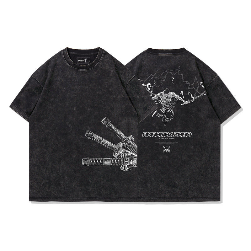 海賊王索隆拔刀水洗做舊 2026親子情侶男女同款 印花水洗短袖