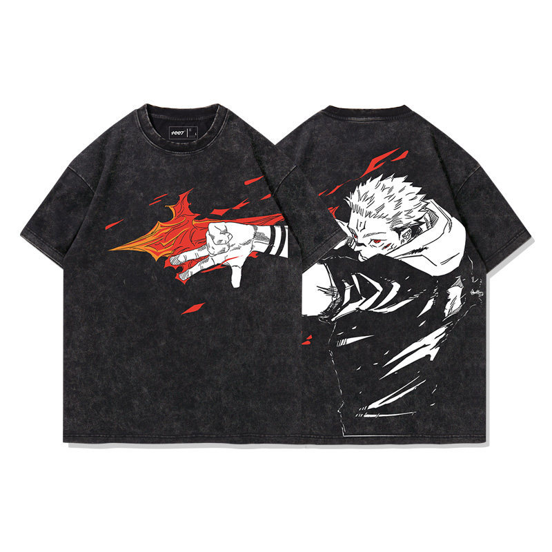 咒術迴戰兩面宿儺術式水洗做舊 2026親子情侶男女同款 印花水洗短袖