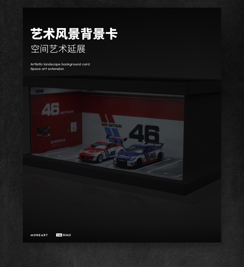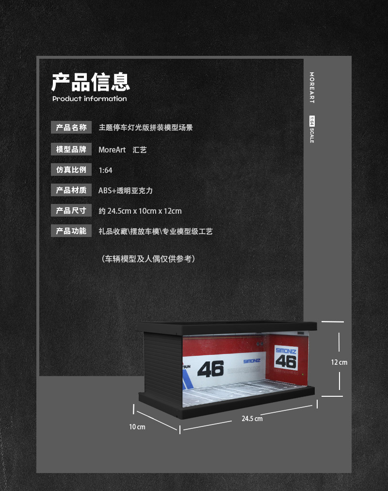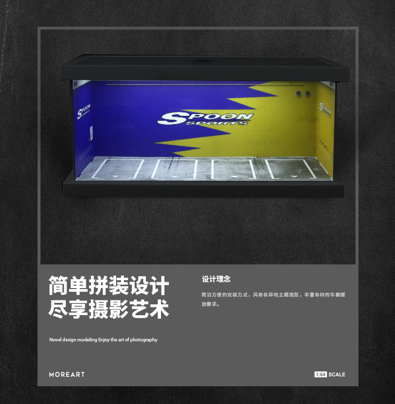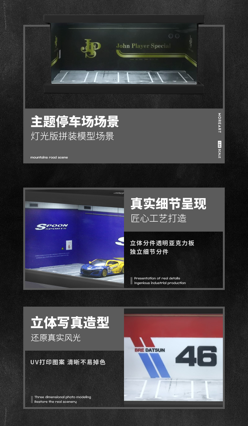 MoreArt 1:64 主題停車四車位燈光版拼裝場景模型