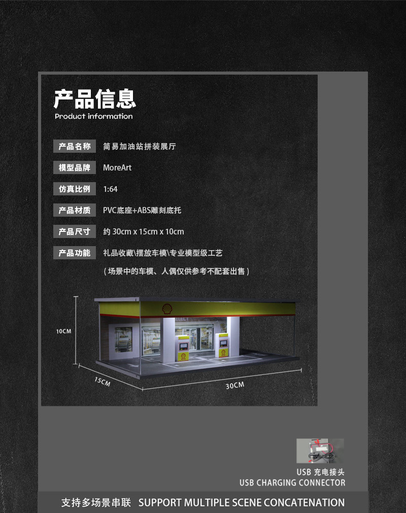 MoreArt 1:64 簡易加油站拼裝展廳場景