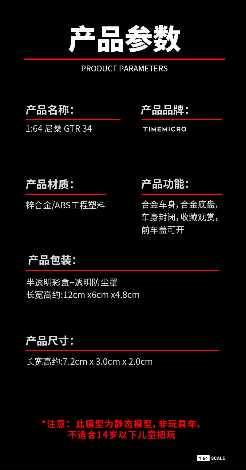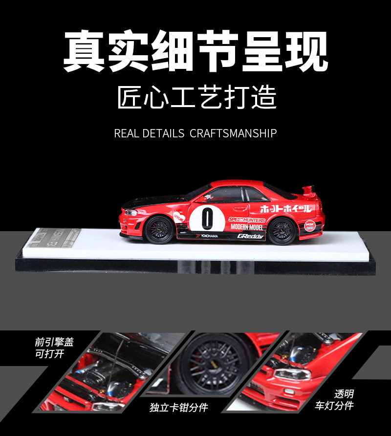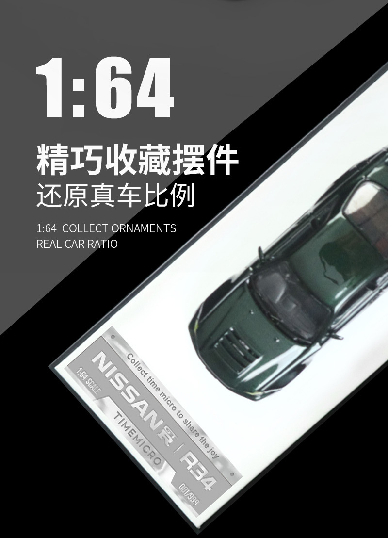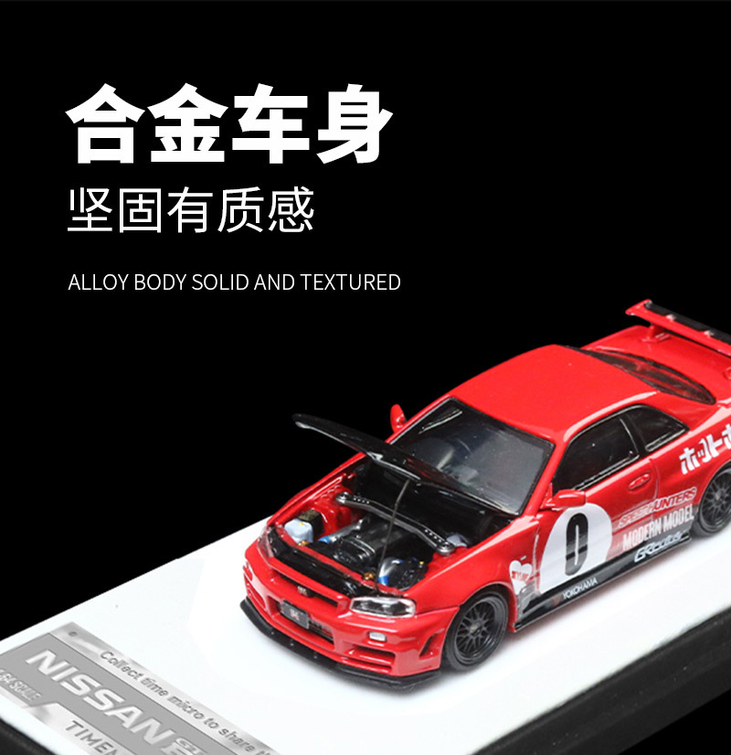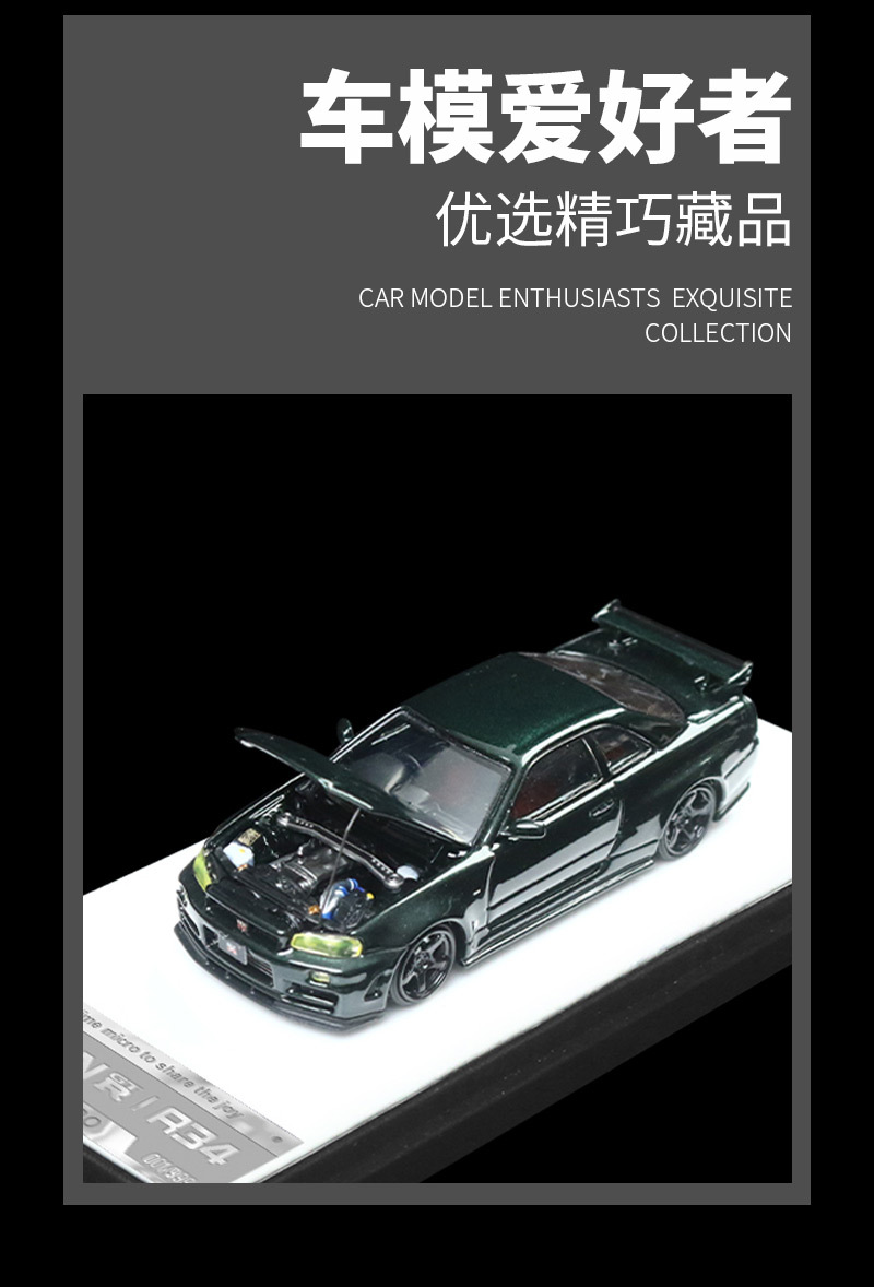 壹號站臺|時光1:64 GTR34 0號紅色墨綠色仿真合金汽車模型