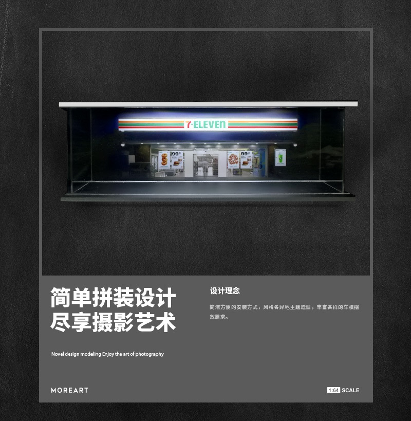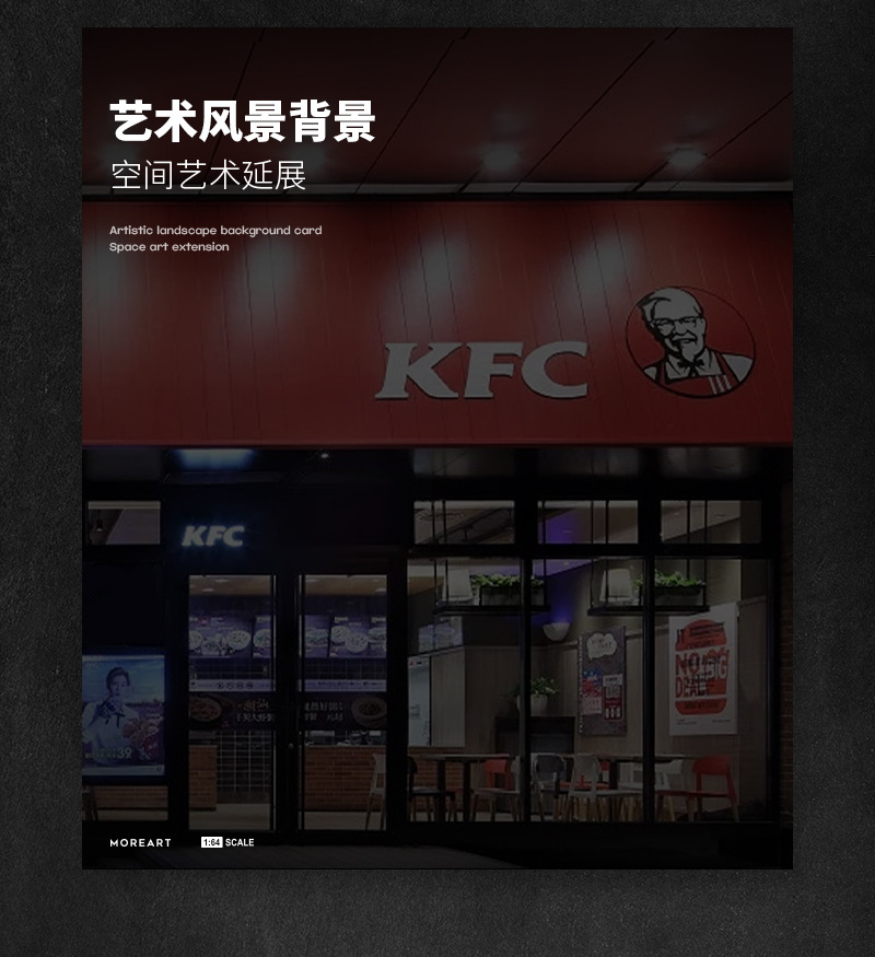 MORE ART 1:64 星巴克便利店肯德基主題停車場燈光版拼裝場景