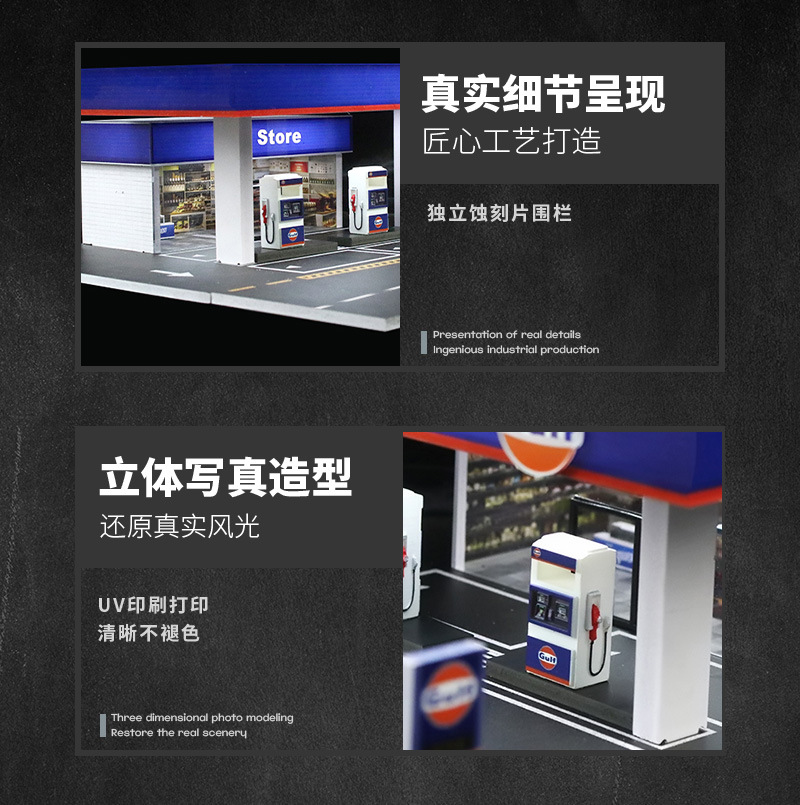 MoreArt 1:64Gulf海灣石油加油站場景模型