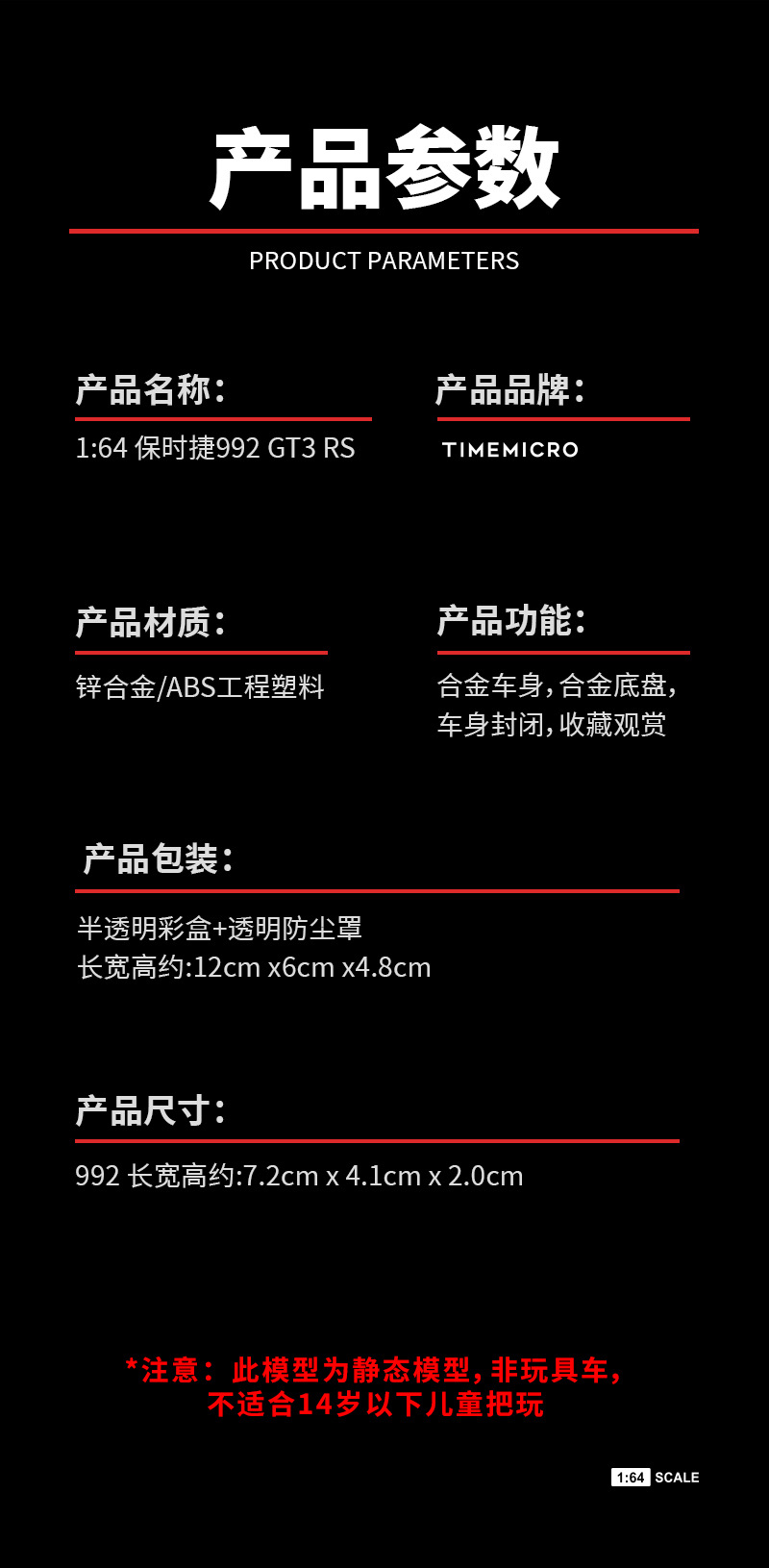TimeMicro1:64 保時捷992 GT3 RS TITAN 仿真合金汽車模型