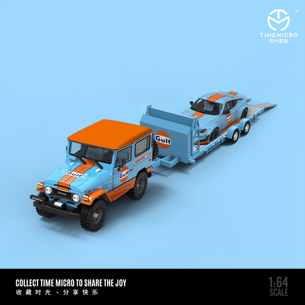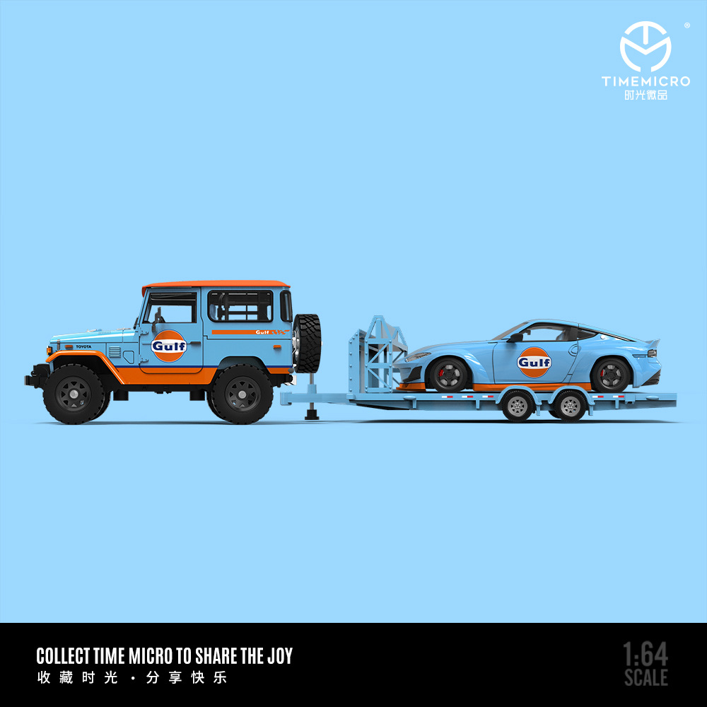 TM1:64 尼桑400Z和FJ40海灣石油拖車套裝仿真合金汽車模型